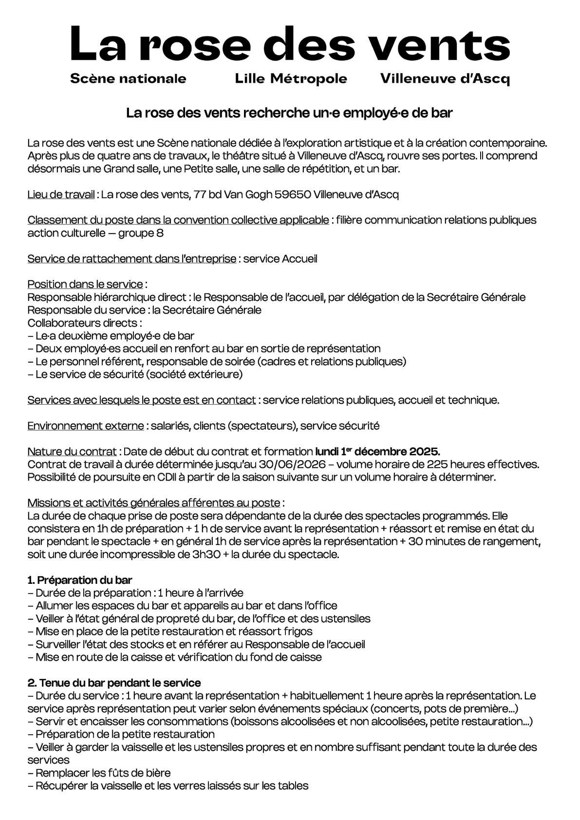 - Un·e employé·e de bar du 1er décembre 2025 au 30 juin 2026.