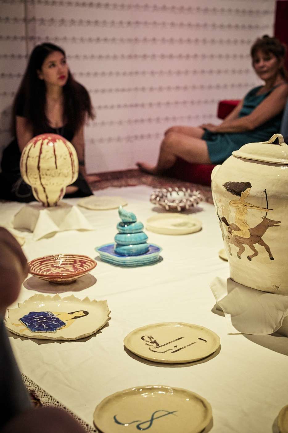 Kubra Khademi est performeuse et plasticienne, Mortaza Behboudi est reporter de guerre et réalisateur. Aux côtés d’une équipe de vidéastes anonymes de Kaboul, iels nous invitent à être témoins de la lutte quotidienne des femmes d’Afghanistan face à la violence systémique, l’enfermement et la disparition progressive de leurs droits depuis le retour des talibans. Dans un lieu clos conçu comme un salon afghan, le récit se déploie par l’écoute, les sensations et les images : on y découvre les témoignages de Laila, fondatrice d’une école clandestine pour filles, de Souhaila, artiste et chanteuse, et de Narges, ancienne enseignante qui se bat pour faire libérer son mari enfermé par les talibans. Privées d’éducation, de liberté de mouvement et de parole publique, elles continuent pourtant de résister dans la clandestinité, par l’apprentissage, la création et la transmission. L’installation raconte cette vitalité fragile, clandestine, désespérée parfois, mais toujours bien vivante.